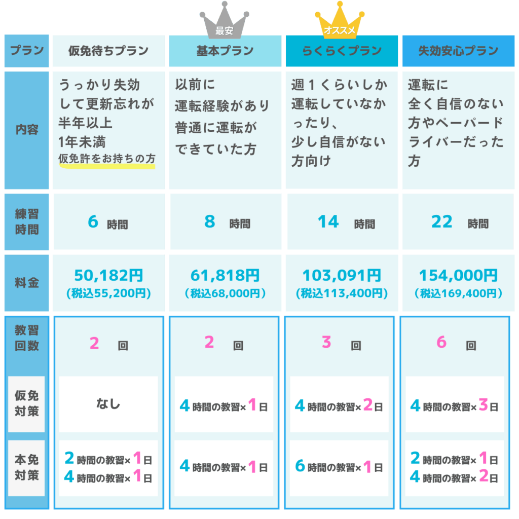 | 費用 | 30〜40万前後 | 新 規:約18万〜 再取得:約6万〜 |