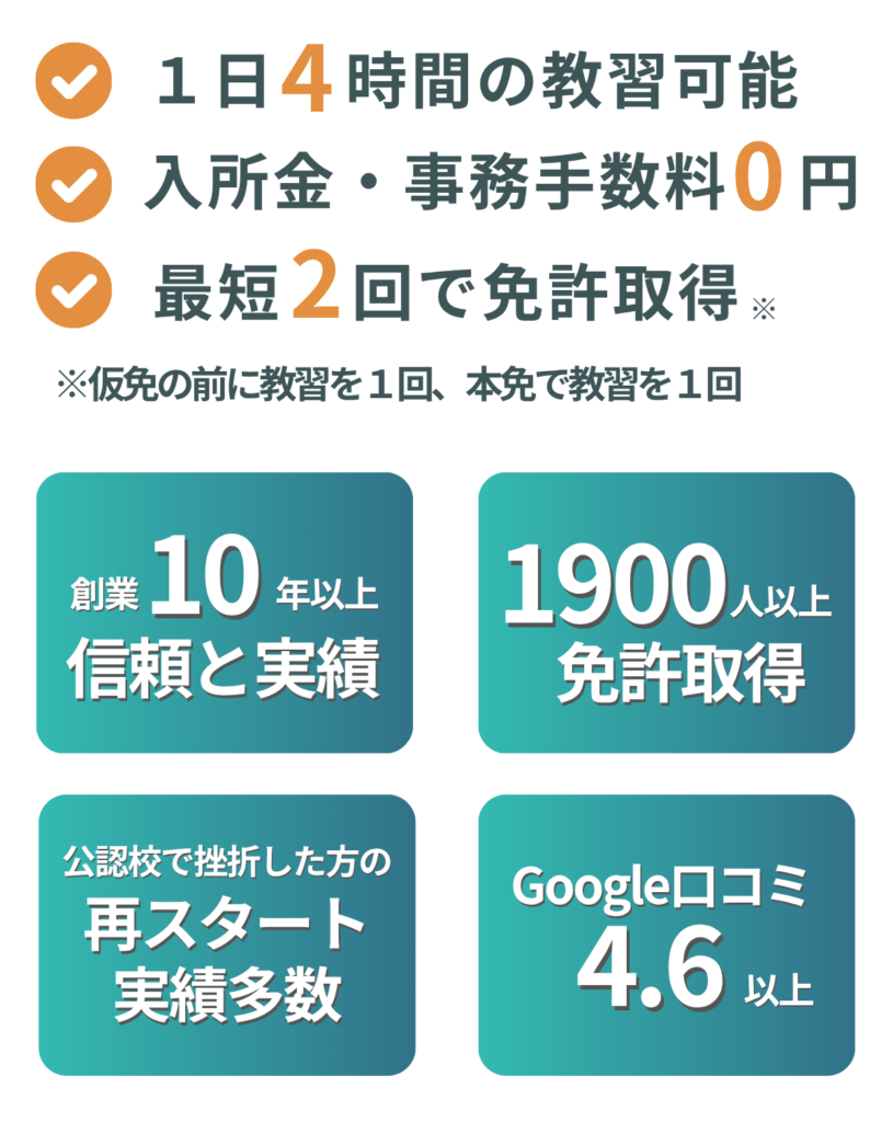 当スクールでの免許取得方法は、